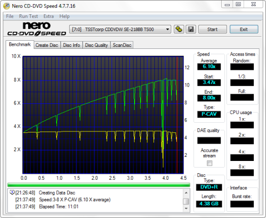 | TDK 16x DVD+R | CMC MAG M01 | 8x | 11:19 |