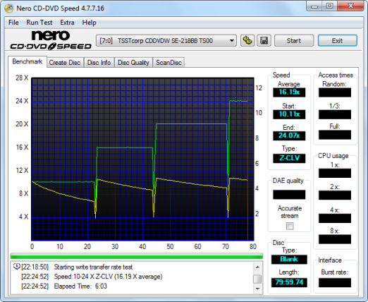 The SE-218BB also reads CD-RW media at 24x. As you can see, it had no problems reaching this speed in our tests.