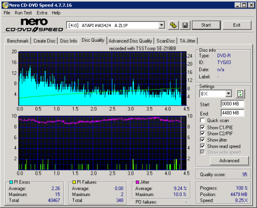 The SE-218BB performed as expected when writing to DVD+R DL media. In our tests, the drive took 22:47 to write 8001MB of data to Verbatim's 8x DVD+R DL discs. So what about writing quality? Take a look below.