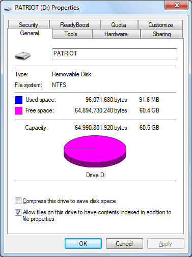 The Supersonic comes formatted with NTFS, giving the 64GB model about 60.4GB of usable space.
