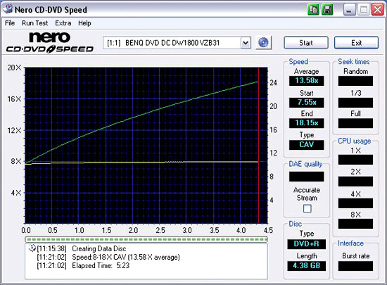 Max. DVD writing speed 18x +R, 18x -R