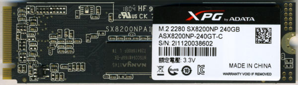 Model: ADATA XPG SX8200 240GB PCIe M.2 Solid State Drive