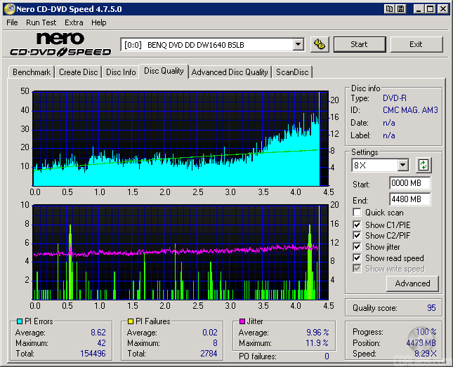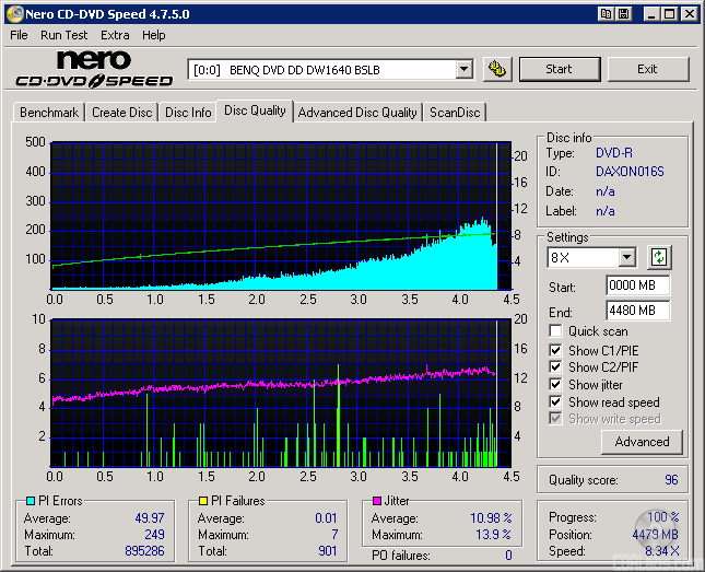 I also put these discs through a "stress test" by reading them back at 16x with the DW1640. By reading these discs back at this speed, we can see if there are any readability issues caused by the number of errors or high levels of jitter.