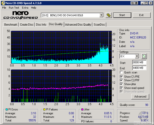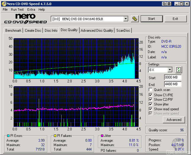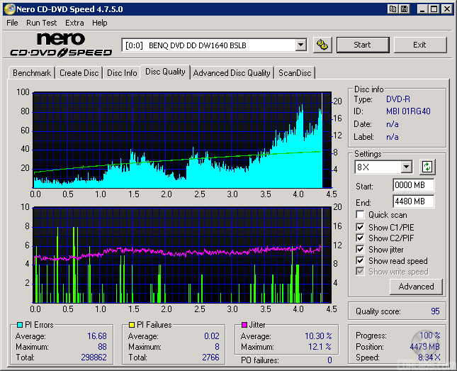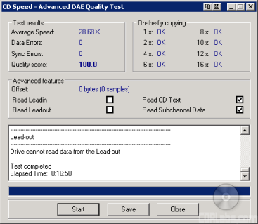 I also put these discs through a "stress test" by reading them back at 16x with the DW1640. By reading these discs back at this speed, we can see if there are any readability issues caused by the number of errors or high levels of jitter.