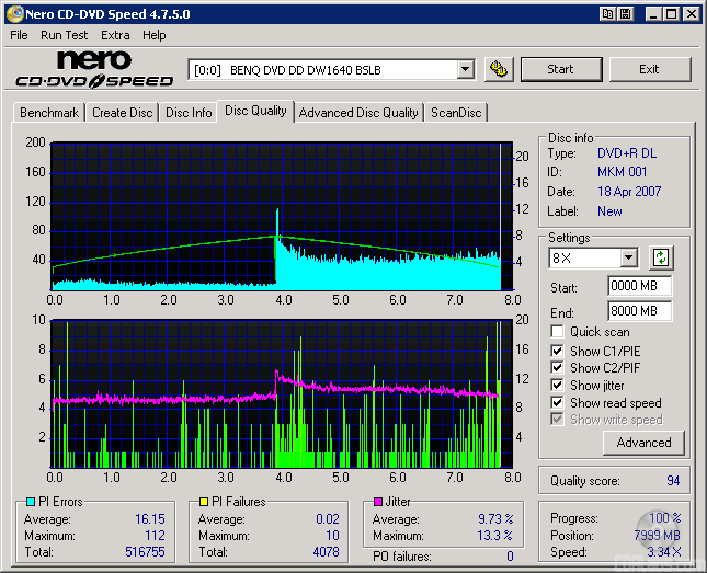 While no match for the drive from Plextor, the DRW-1814BLT took a respectable 18:33 to write 8001MB of data. So what about writing quality? Take a look below.