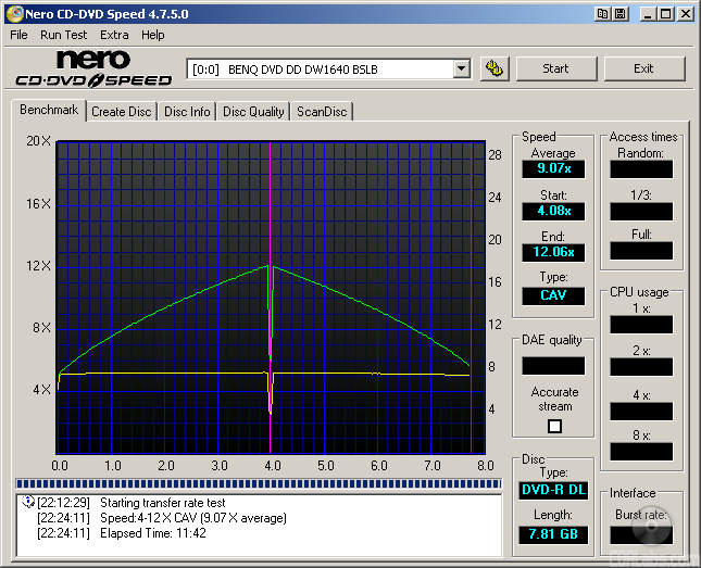DVD Read Tests: For the read performance section of the DVD benchmarks CD Speed v4.7.5 is used to test read speeds, seek times, and CPU usage.