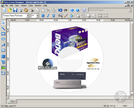 Even if you have a LightScribe capable drive and media, you will need software that supports it. Most major software companies have pledged support for the technology. However, at the time of this review, the list of compatible software is still relatively short. For the DW1655, BenQ turned to Nero. Using the bundled software you can both create and burn LightScribe disc labels.