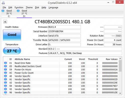 Like the MX200, MX100 and BX100, the new BX200 works with Crucial's Storage Executive software. This free downloadable tool is easy to use and helps monitor and enhance the performance of your SSD. From the main screen, users can view information about the system and check the health of their drives. You can also view additional details about each drive including the serial number, firmware, capacity and the total bytes written.