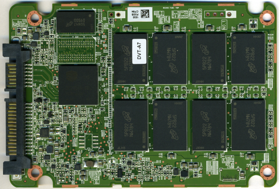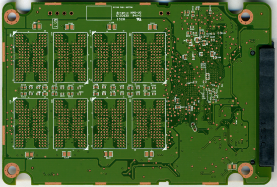 For the 480GB version of the BX200, Crucial opted to use Micron's 16nm 128Gb TLC NAND flash. Looking at the picture above, you can see that there are eight 64GB NAND flash packages on top of the PCB. The drive also has a 512MB Micron LPDDR3 memory chip that is used for caching.