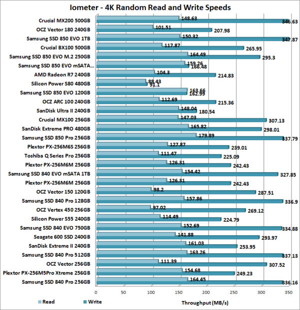 The MX200 also performed very well when doing random reads and writes. In our tests, the drive was able to read at 148.63 MB/s and write at a blazing 346.63 MB/s.