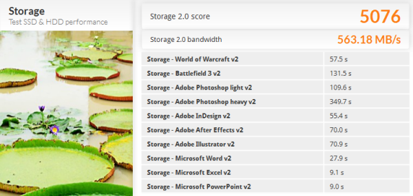 PCMark 8 is a complete benchmark for Windows. It includes five benchmark tests, each designed around a specific scenario. The storage benchmark measures drive performance using real-world traces recorded from Adobe Creative Suite, Microsoft Office and a selection of popular games.
