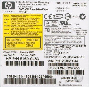 Model: HP dvd640i LightScribe 16x DVD±RW