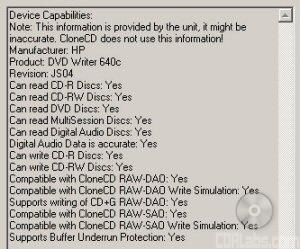 | DVD+R DL Write | HP dvd640i |