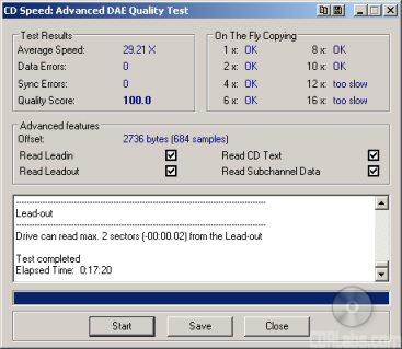 CD Read Tests: For the read performance section of the CD-ROM benchmarks, CD WinBench 99 v3.0 and CD Speed v4.00 are used to test read speeds, seek times and CPU usage. For DAE testing both CD Speed and CD DAE are used. CD Speed is used to give an overall DAE speed rating and CD DAE is used to give the track by track extraction speeds and to check the extracted tracks for errors the drive may have created.