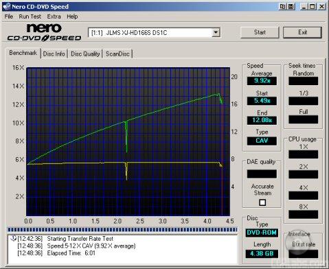 DVD Read Tests: For the read performance section of the DVD benchmarks CD Speed v4.00 is used to test read speeds, seek times, and CPU usage.