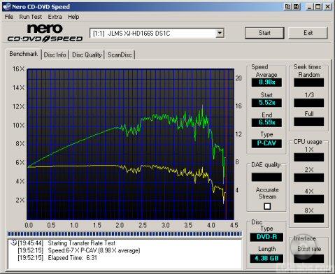 DVD Write Tests: To test the DVD write speeds, Nero Burning Rom is used to write 4GB to our test media. Times are recorded. Then Sonic's DLA is used to test packet writing speeds. The same files are copied and pasted in Windows Explorer and timed.