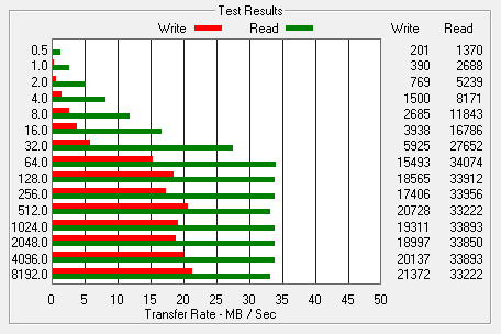 | 1MB Write: | 31.87 MB/s | 22.71 MB/s | 15.74 MB/s | 11.70 MB/s |