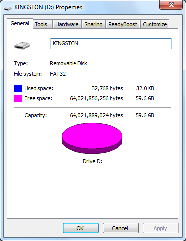 The DataTraveler HyperX 3.0 comes formatted with FAT32, giving the 64GB model about 59.6GB of usable space. If you plan to store files larger than 4GB in size, you'll want to convert or reformat the drive with NTFS.