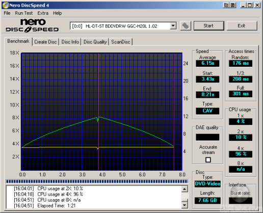 DVD Read Tests: For the read performance section of the DVD benchmarks DiscSpeed is used to test transfer speeds, seek times, and CPU usage.