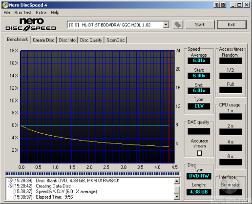 DVD Write Tests: To test the DVD write speeds, Nero Burning Rom is used to write a 4.38GB image to our test media. Times are recorded. Then Sonic's DLA is used to test packet writing speeds. For this, 4GB of random files and directories are copied and pasted in Windows Explorer and timed.
