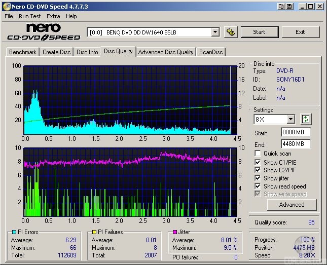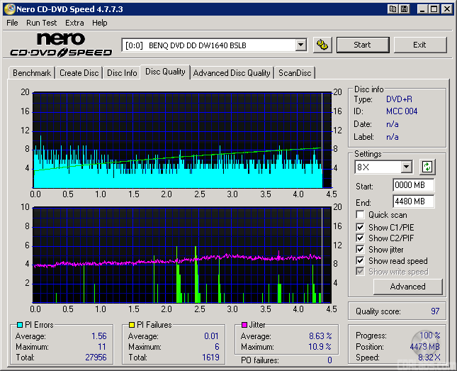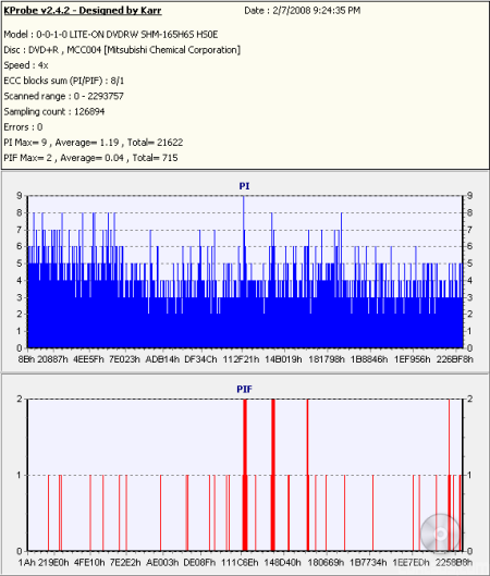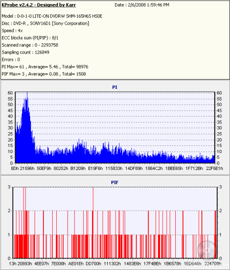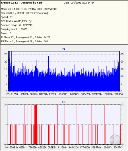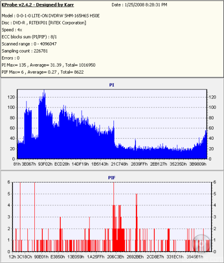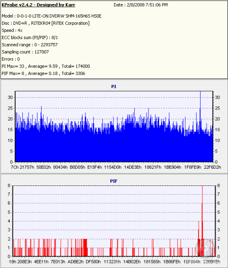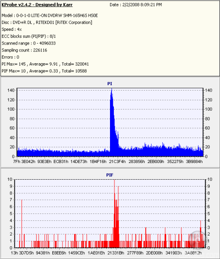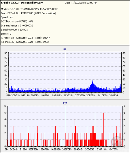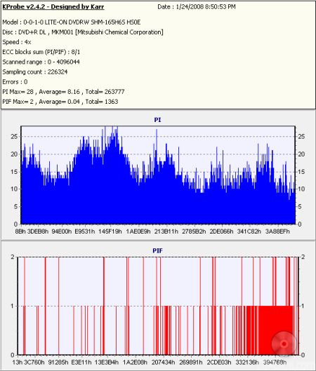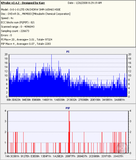 The GGC-H20L performed as expected when writing to DVD+R DL and DVD-R DL media at 4x. In both cases, the drive took less than 28 minutes to write 8001MB of data. So what about writing quality? Take a look below.