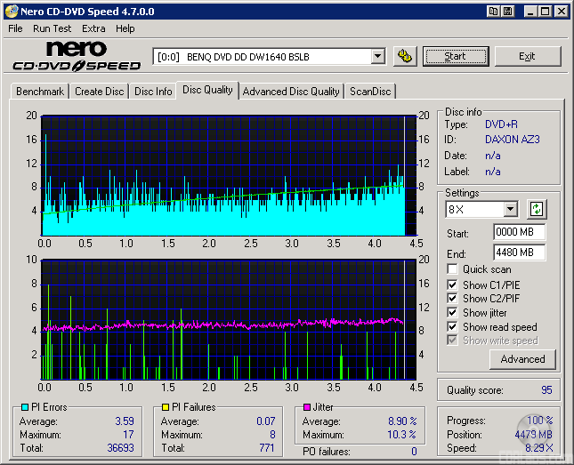 I also put these discs through a "stress test" by reading them back at 16x with the DW1640. By reading these discs back at this speed, we can see if there are any readability issues caused by the number of errors or high levels of jitter.