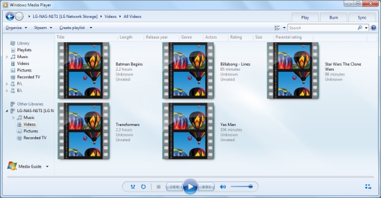While its not clear whether or not the N1T1 is DLNA-certified, LG does state that the device is compliant with the standard for a Digital Media Server (DMS). To see how well this service worked, I tried watching a few movies through Windows Media Player in Windows 7 as well as my PS3. In both cases, the N1T1 worked flawlessly.
