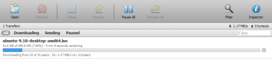 Last but not least, the N1T1 features a built in Torrent download service. To access the Torrent program administration window, click on the Torrent icon on the top of the web menu. From here you can manage your downloads or start a new one by uploading a Torrent file or entering an URL to one. When the download is complete, the file is automatically placed in the Torrent folder located within the service share.