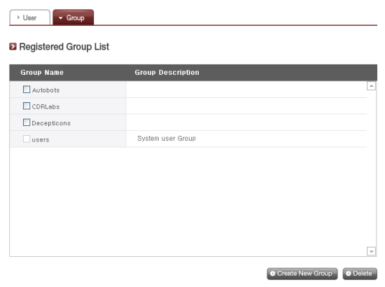The Group option is pretty straightforward. From here, you can create and delete groups as well as add and remove users.