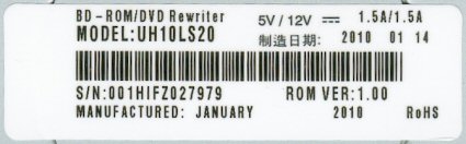 The drive LG sent us for this review was manufactured in January of 2010 and had firmware version 1.00. At the time of this review, this is the only official firmware available for the UH10LS20.