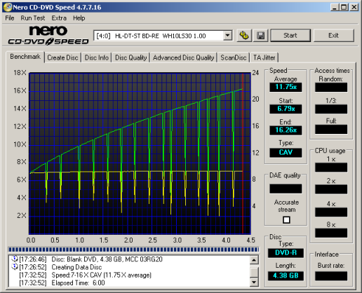 DVD Read Tests: For the read performance section of the DVD benchmarks CD Speed v4.7.7.16 is used to test read speeds, access times, and CPU usage.