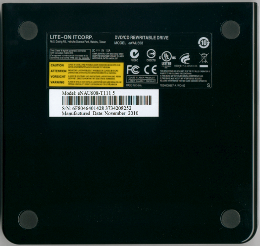 - Lite-On eNAU608 8x USB 2.0 DVD±RW/RAM Drive