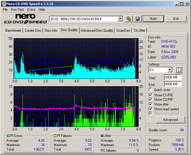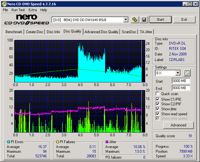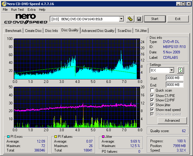 Double Layer DVD Write Tests - Nero Burning Rom 7.11.10.0: