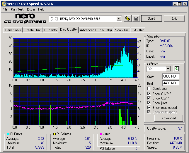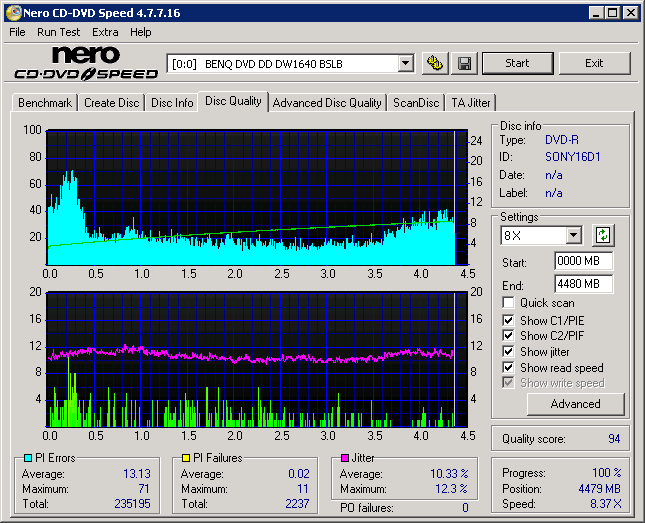 I also put these discs through a "stress test" by reading them back at 16x with the DW1640. By reading these discs back at this speed, we can see if there are any readability issues caused by the number of errors or high levels of jitter.
