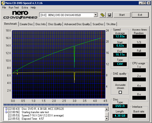 | Verbatim 16x DVD-R | MCC 03RG20 | 16x | 5:40 |
