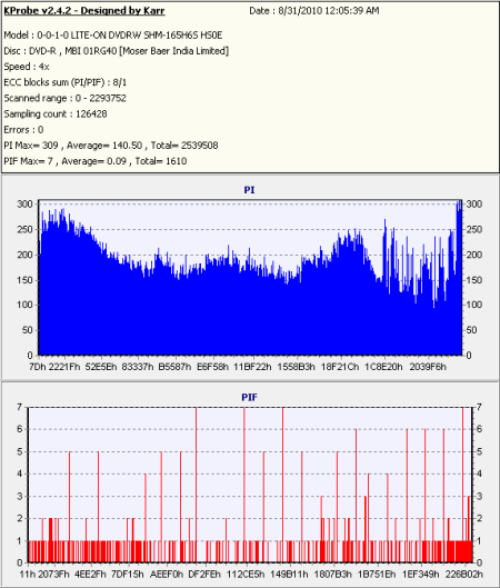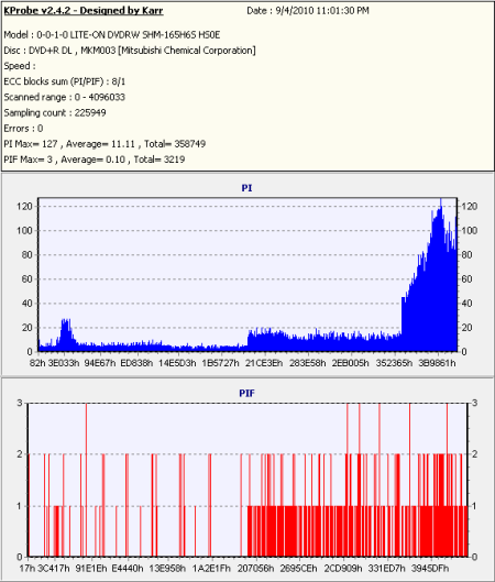 The iHBS112 is one of the few drives capable of performing write quality testing with Blu-ray Disc media. When combined with software like CD Speed or Erik Deppe's Opti Drive Control, the drive is able to report the Long Distance Code (LDC) and Burst Indicator Subcode (BIS).