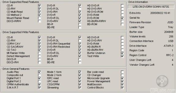 InfoTool also shows that the SOHW-1673S is an RPC-2 DVD drive. This means that the drive's region is stored in the firmware. The drive's region can be changed five times and after that it cannot be changed anymore. While there isn't an RPC-1 firmware available for the drive, there is a utility available that can make the drive region free.