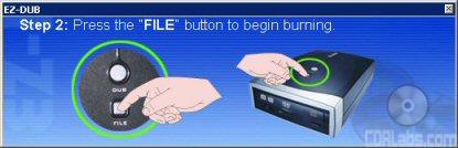 Copying, or "dubbing", a disc is an even simpler process. To start, put the source disc in the drive and press the "DUB" button. The EZ-DUB software will then read the disc and copy an image of it to your hard drive. When it's done, insert a blank disc in the drive. The software will then burn the image to disc.