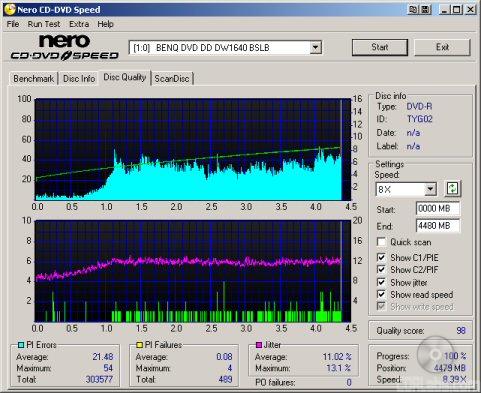 I also put these discs through a "stress test" by reading them back at 16x with the DW1640. By reading these discs back at this speed, we can see if there are any readability issues caused by the number of errors or high levels of jitter.