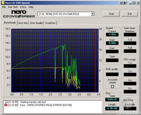 The SOHW-1673SU's writing quality was less than impressive. In most cases, the PI/PIF rates were much higher than we'd like to see, especially when scanned with the BenQ DW1640. This, and the high jitter rates, caused a number of readability problems.