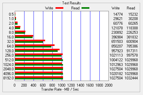 Next, I used ATTO Disk Benchmark to test the SSDs' sequential read and write speeds. The test was run using blocks ranging in size from 0.5KB to 8192KB and the total length set to 256MB.