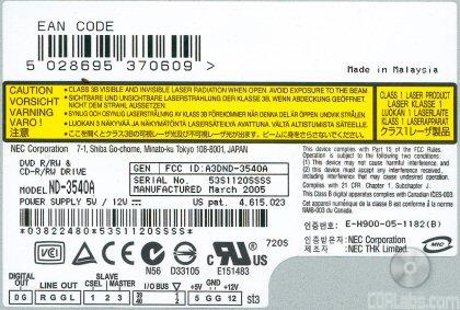 The drive NEC sent us for this review was manufactured in March of 2005 and had firmware 1.01. At the time of this review, this is the only official firmware available for the ND-3540A.