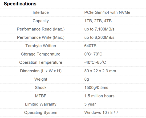 The NV7000-Q is available in 1TB, 2TB and 4TB capacities. For this review, Netac sent us the 1TB version of the drive which is capable of delivering up to 7,100 MB/s sequential read and 6,200 MB/s sequential write speeds.