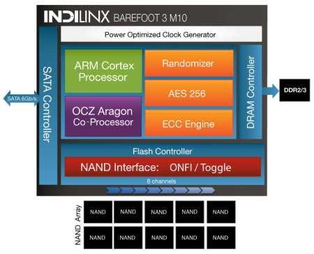 One of the latest additions to OCZ's line of consumer-oriented solid state drives is the ARC 100. Developed to deliver exceptional performance at an enticing price point, the ARC 100 is based on OCZ's Indilinx Barefoot 3 M10 controller. This cutting-edge controller is powered by both an ARM Cortex processor and OCZ's own Aragon co-processor and features an advanced, multi-level ECC engine, low write amplification, efficient garbage collection, and adaptive NAND flash management. The M10 derivative of the Barefoot 3 ups the ante even further, adding AES-256 encryption and a power-optimized clock generator. The ARC 100 is also equipped with Toshiba's Advanced 19nm (A19) Toggle Mode MLC NAND flash and an extra large DRAM cache to deliver up to 490 MB/s read and 450 MB/s write speeds along with a maximum of 80,000 4KB random write IOPS.