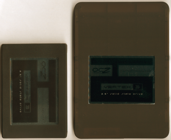 While only 11mm thick, the OCZ Vertex 3 3.5" has the same footprint as a standard 3.5" hard drive. As you can imagine, it looks quite large when placed next to the original Vertex 3.