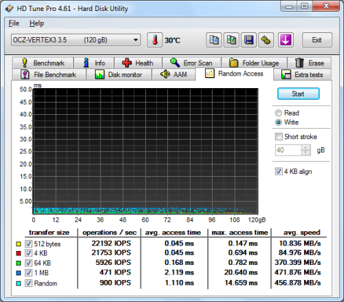 ![]() OCZ Vertex 3 3.5" 120GB - HD Tune Random Access Write |