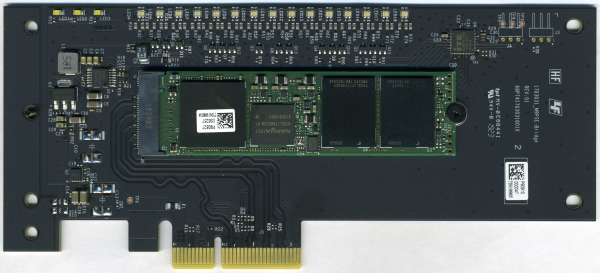 Like Plextor's previous HHHL SSDs, the M9PY Plus is very well constructed. The top of the PCIe add-in card is covered entirely by a massive aluminum heatsink which has a nice black finish. The M9PY Plus also has a bright red bubble with the Plextor logo on it.