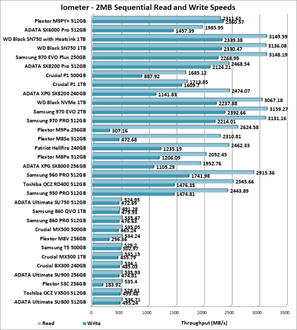 To test the performance of Plextor's M9PY Plus SSD, I ran a series of benchmarks using CrystalDiskMark, HD Tach RW, ATTO Disk Benchmark, AS SSD, HD Tune Pro, Anvil's Storage Utilities, Iometer and PCMark 8. For comparison, I've also included test results from the ADATA XPG SX6000 Pro, Western Digital WD Black SN750, Samsung 970 EVO Plus, ADATA XPG SX8200 Pro, Crucial P1, ADATA XPG SX8200, Western Digital WD Black NVMe, Samsung 970 EVO, Samsung 970 PRO, Plextor M9Pe, Plextor M8Se, Patriot Hellfire, ADATA XPG SX8000, Samsung 960 PRO, Toshiba OCZ RD400, Samsung 950 PRO, Samsung 860 QVO, Samsung 860 PRO, Crucial MX500, Plextor M8V, Samsung T5, Crucial BX300, ADATA Ultimate SU900, Plextor S3C, Toshiba OCZ VX500 and ADATA Ultimate SU800.