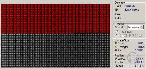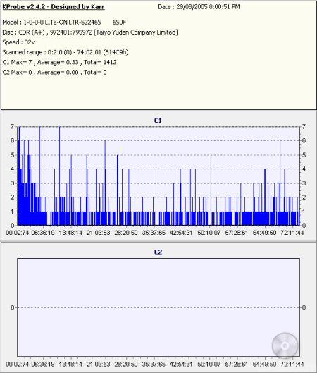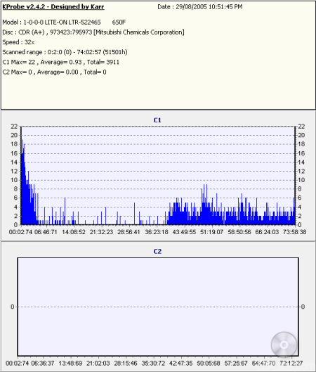 So what are "good" results supposed to look like? With KProbe, the PI errors should not exceed 280 and the number of PIF errors should stay below 4. When testing with CD Speed, the number of PI errors should stay below 280 as well. However, because it scans with an ECC sum of 8, a higher number of PIF errors is acceptable, as long as they do not exceed 32. Since POF errors are uncorrectable, we really don't want to see any of them at all.