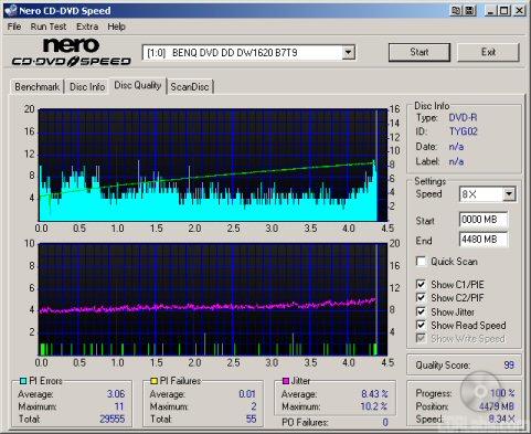 With its 4x writing speed, the PX-740A was no match for the ND-3540A and PX-716A. As you can see, it took the drive 29:28 to write 8001MB of data. So what about writing quality? Take a look below.